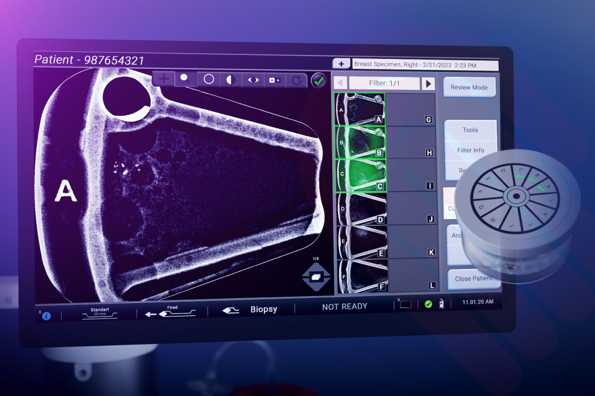 Brevera™ Breast Biopsy System, biyopsi sürecinde alınan her bir doku örneğinin gerçek zamanlı olarak görüntülenmesini ve doğrulanmasını sağlayan entegre bir numune yönetim sistemi sunar. Bu teknoloji sayesinde radyolog, her çekirdeğin (core) 8 saniye içinde görüntüsünü görebilir* ve numunenin hedeflenen lezyonu içerip içermediğini anında değerlendirebilir.